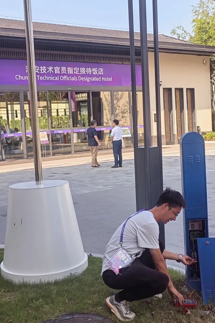 “主要工作是进行维保,防患未然,杜绝一切风险。所有线路和设施都要进行安全隐患排查,监控、道闸、门禁、照明、机房......每天都要摸排检查一遍、测试一遍,”谈到亚运会项目保障工作,维修保障小组组长孙同海感慨道:“此次参与亚运会项目感受很多,第一次参加世界级比赛项目的保障工作。能亲眼目睹比赛的过程以及颁奖,比在电视上看到的更加振奋人心。一想到国家盛会也有我的一点点努力,自豪感更是从心底油然而生。国庆节来临之际,祝福祖国以更加矫健有力的姿态屹立世界舞台。